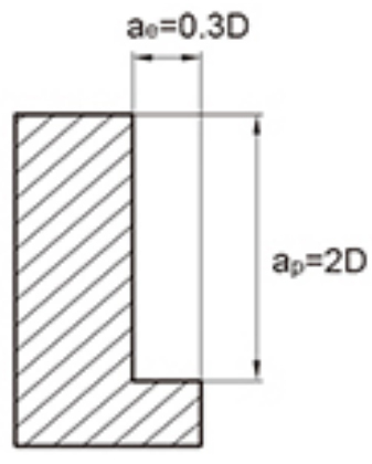 1. La tabella sopra mostra i valori standard per la lavorazione con fresatura laterale. Quando si tagliano scanalature con l'utensile, la velocità dovrebbe essere compresa tra il 60% e l'80% della tabella precedente e la velocità di avanzamento dovrebbe essere basata come standard su un valore compreso tra il 50% e il 70%.