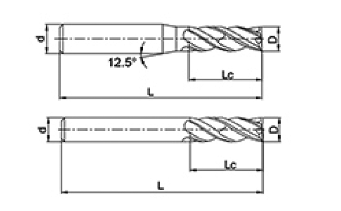 | No. | Diametro D | lunghezza del flauto Lc | Lunghezza totale L | Diametro gambo d | Conteggio delle lame F |