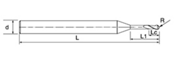 | No. | Diametro D | Angolo R R | lunghezza del flauto Lc | Lunghezza effettiva L1 | Lunghezza totale L | Diametro gambo d | Conteggio delle lame F |