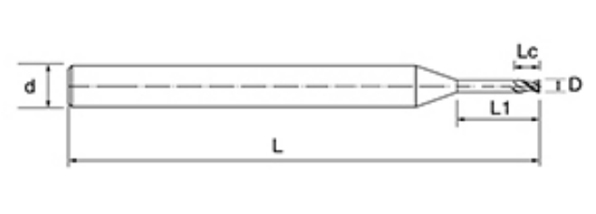 | No. | Diametro D | lunghezza del flauto Lc | Lunghezza effettiva L1 | Lunghezza totale L | Diametro gambo d | Conteggio delle lame F |