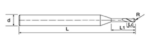 | No. | Diametro D | Angolo R R | lunghezza del flauto Lc | Lunghezza effettiva L1 | Lunghezza totale L | Diametro gambo d | Conteggio delle lame F |
