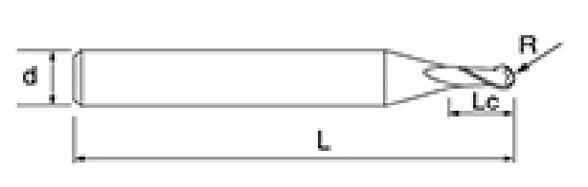 | No. | Diametro D | Angolo R R | lunghezza del flauto Lc | Lunghezza totale L | Diametro gambo d | Conteggio delle lame F |
