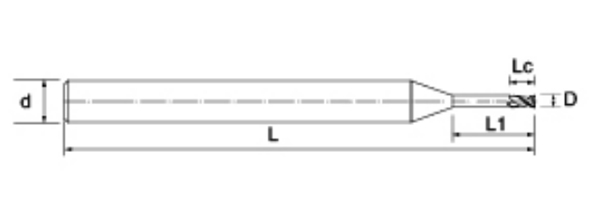 | No. | Diametro D | lunghezza del flauto Lc | Lunghezza effettiva L1 | Lunghezza totale L | Diametro gambo d | Conteggio delle lame F |