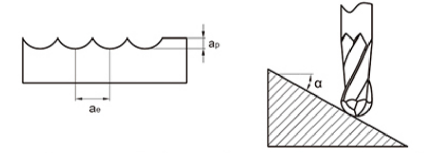 | Raggio della testa sferica (mm) | Velocità di rotazione (min -1 ) | Velocità di alimentazione (mm/min) | a p (mm) | a e (mm) | Velocità di rotazione (min -1 ) | Velocità di alimentazione (mm/min) | a p (mm) | a e (mm) | Velocità di rotazione (min -1 ) | Velocità di alimentazione (mm/min) | a p (mm) | a e (mm) |