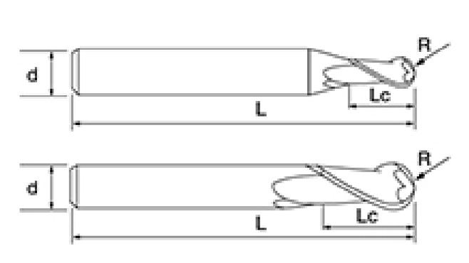 | Serie di strumenti | Diametro | Raggio | Raggio d'angolo | lunghezza del flauto | Lunghezza effettiva | Lunghezza totale | Diametro gambo | |||