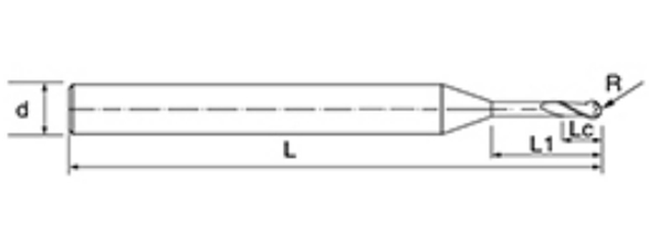 | No. | Diametro D | Angolo R R | lunghezza del flauto Lc | Lunghezza effettiva L1 | Lunghezza totale L | Diametro gambo d | Conteggio delle lame F |