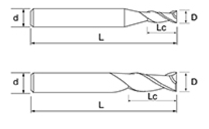 | No. | Diametro D | lunghezza del flauto Lc | Lunghezza totale L | Diametro gambo d | Conteggio delle lame F |