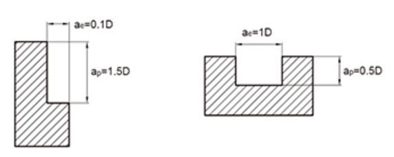 1. La tabella sopra si basa sui valori di riferimento per la fresatura laterale. Le condizioni di taglio per la fresatura di cave si basano sul 70% della velocità di avanzamento nella tabella sopra.