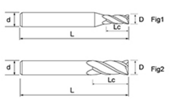| No. | Diametro D | lunghezza del flauto Lc | Lunghezza totale L | Diametro gambo d | Conteggio delle lame F |