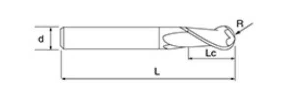 | No. | Diametro D | Angolo R R | lunghezza del flauto Lc | Lunghezza totale L | Diametro gambo d | Conteggio delle lame F |