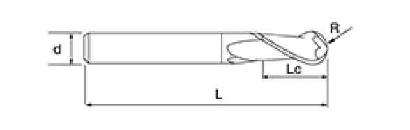 | No. | Diametro D | Angolo R R | lunghezza del flauto Lc | Lunghezza totale L | Diametro gambo d | Conteggio delle lame F |