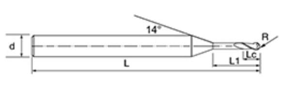 | No. | Diametro D | Angolo R R | lunghezza del flauto Lc | Lunghezza effettiva L1 | Lunghezza totale L | Diametro gambo d | Conteggio delle lame F |